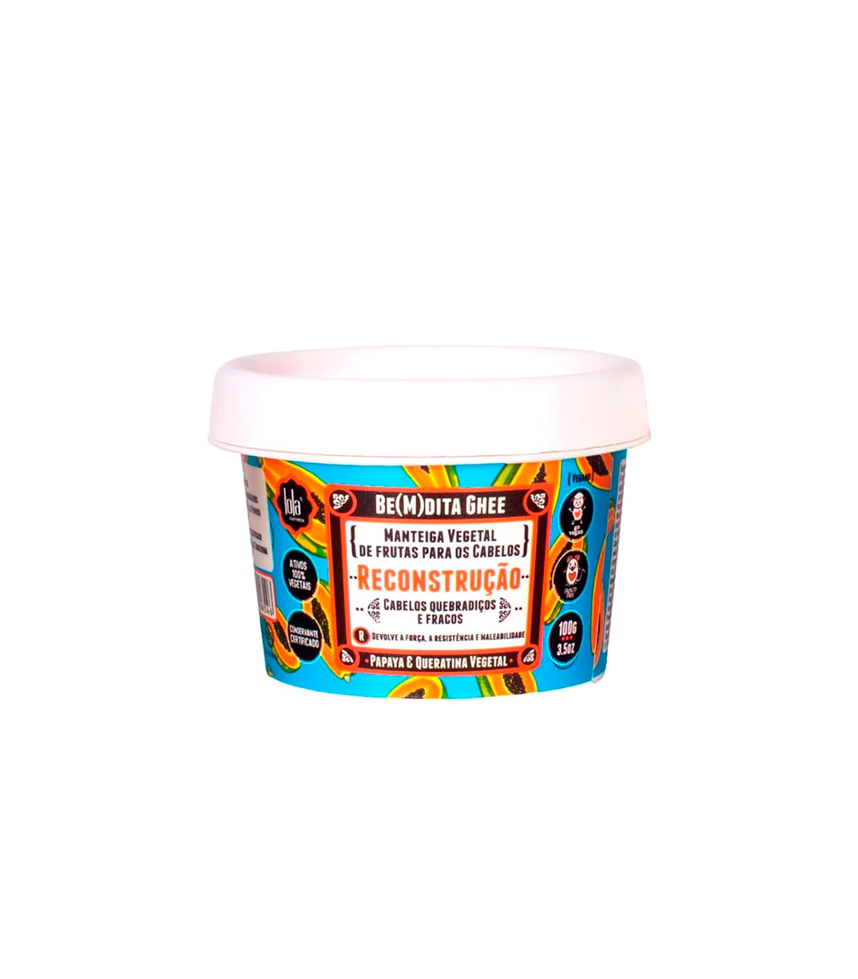 Una máscara de reconstrucción que da fuerza, resistencia y flexibilidad al cabello frágil y frágil, a través de activos de plantas de papaya, aminoácidos y queratina vegetal.