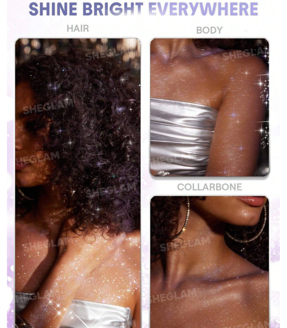 Una bruma ligera con partículas de purpurina que aporta un brillo luminoso y glamuroso al cabello y al cuerpo. Su acabado reluciente refleja la luz como una auténtica reina del baile, ideal para fiestas, festivales o cualquier ocasión especial. Deja un aroma delicado y duradero, mientras añade un toque radiante a tu look.