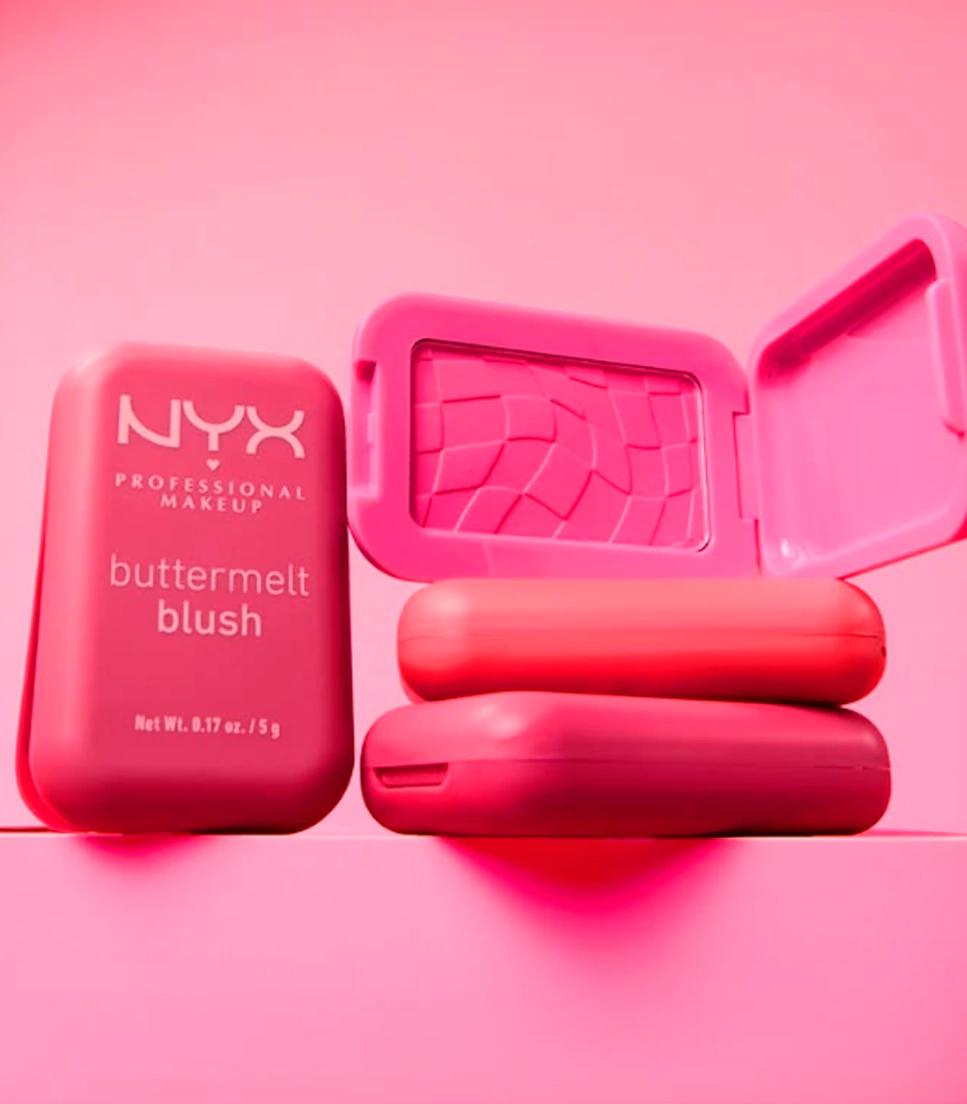 El Buttermelt Blush ofrece pigmentación intensa y larga duración en 12 tonos irresistibles, disponibles en acabados mate y luminosos. Su fórmula está infusionada con manteca de mango, manteca de almendras y manteca de karité, logrando una aplicación suave, uniforme y cómoda en la piel.