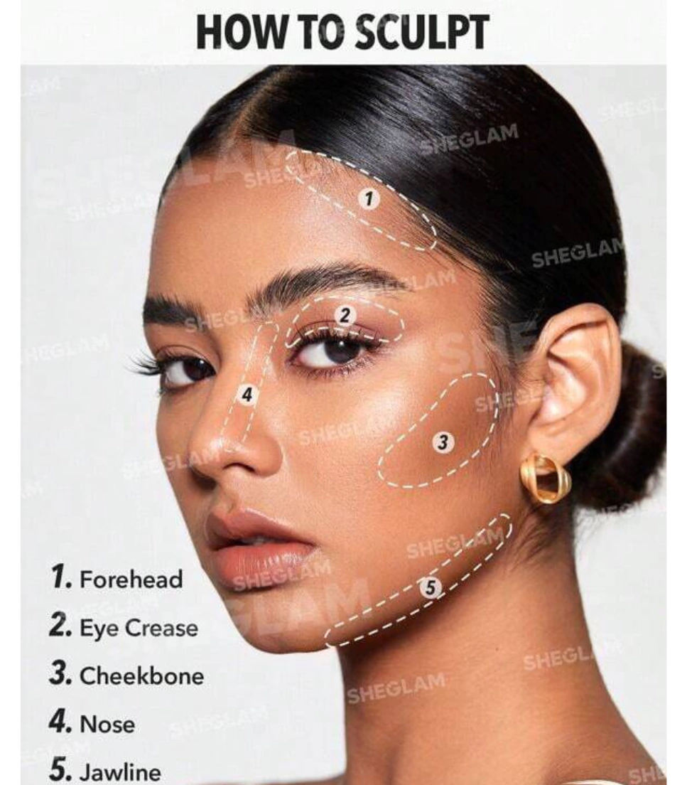 Aplicar en mejillas, mandíbula y frente según sea necesario, difuminando uniformemente.