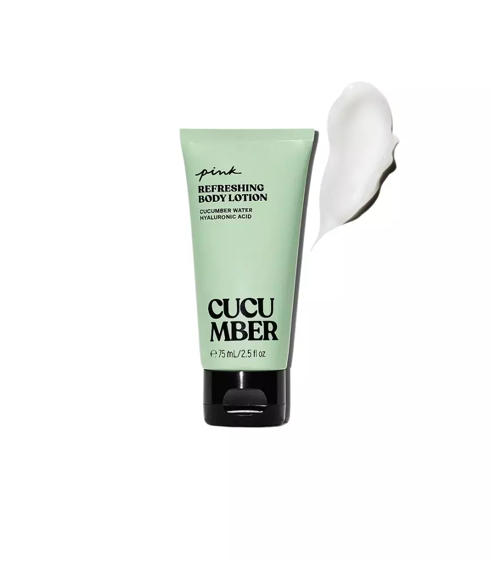 Una loción corporal ligera y refrescante que hidrata de inmediato la piel cansada o reseca. Su fórmula a base de agua se transforma de gel a loción, enriquecida con agua de pepino y ácido hialurónico, dejando una sensación fresca y un delicado aroma limpio a pepino.