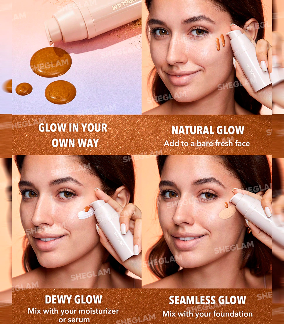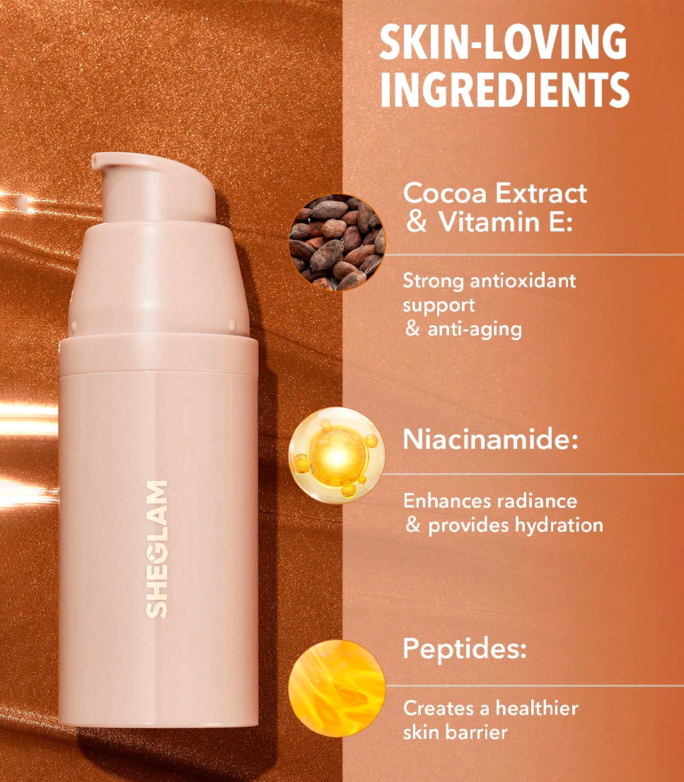 ¿Piel opaca y sin brillo? Gotas bronceadoras SHEGLAM Glo Hero cuentan con una fórmula rica en antioxidantes que incluye extracto de cacao, derivado de vitamina E y más, para hidratar y apoyar tu piel mientras le proporciona un brillo bronceado impresionante.