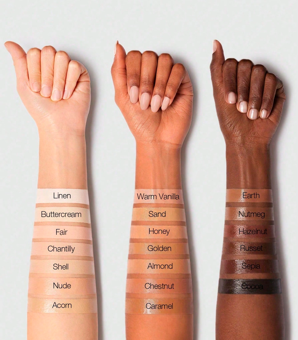 Elaborado con ingredientes seguros para la piel, este corrector de cobertura total altamente pigmentado es adecuado para todo tipo de piel.