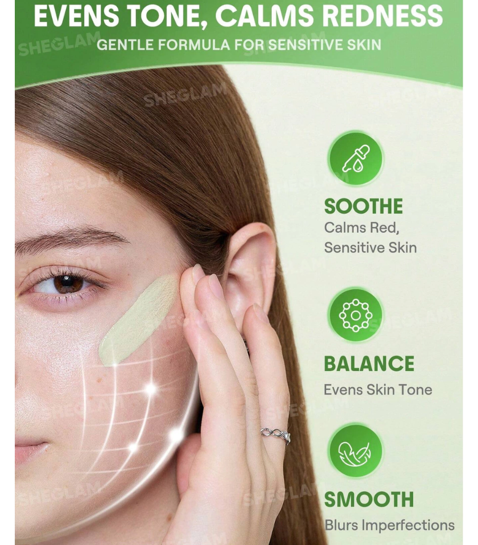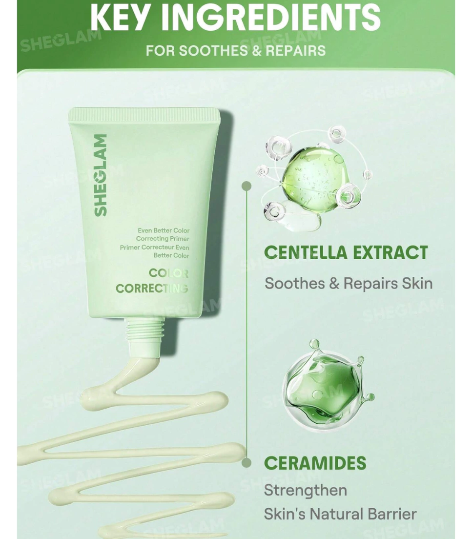 Lográ un cutis equilibrado y sin rojeces con la Prebase Correctora de Color “Green” de SHEGLAM. Su fórmula ligera y de larga duración prepara la piel para una aplicación de maquillaje uniforme, ayudando a mantener el rostro fresco durante todo el día. Enriquecida con extracto de Centella Asiática y ceramidas, calma la piel, fortalece la barrera cutánea y aporta suavidad, mientras corrige visualmente las zonas enrojecidas.