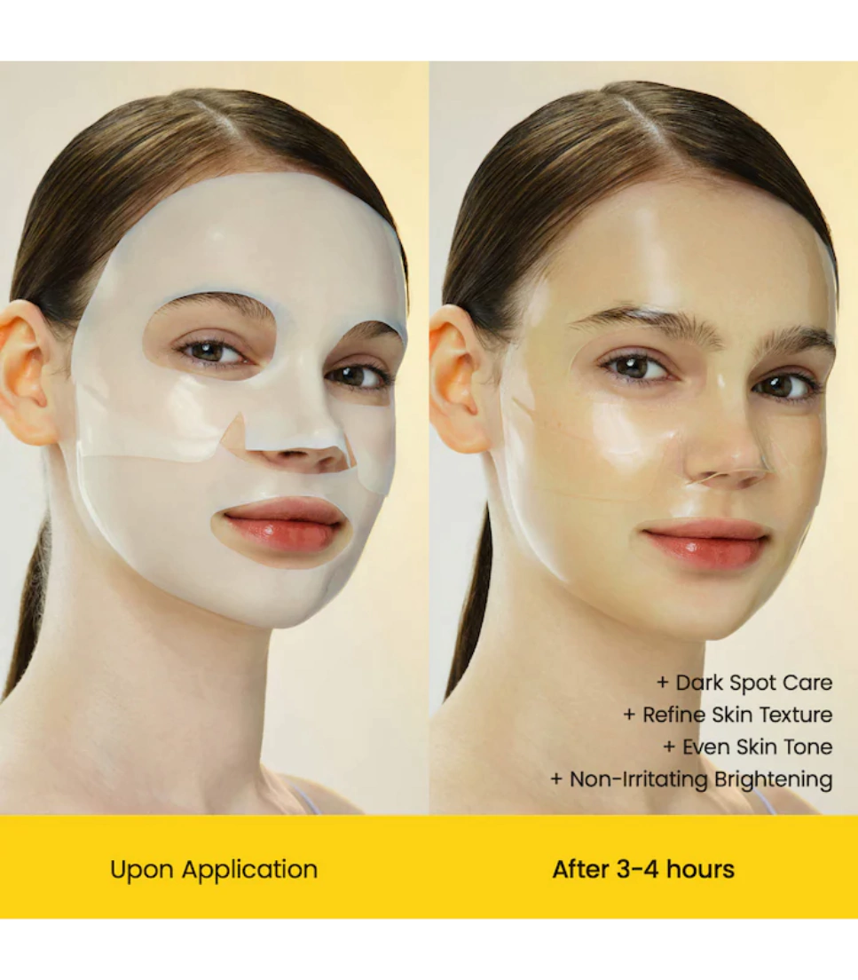 Esta mascarilla contiene niacinamida y glutatión y reduce la apariencia de las manchas oscuras y unifica el tono de la piel. También contiene agua de piña para alisar suavemente la piel para un acabado brillante y translúcido.