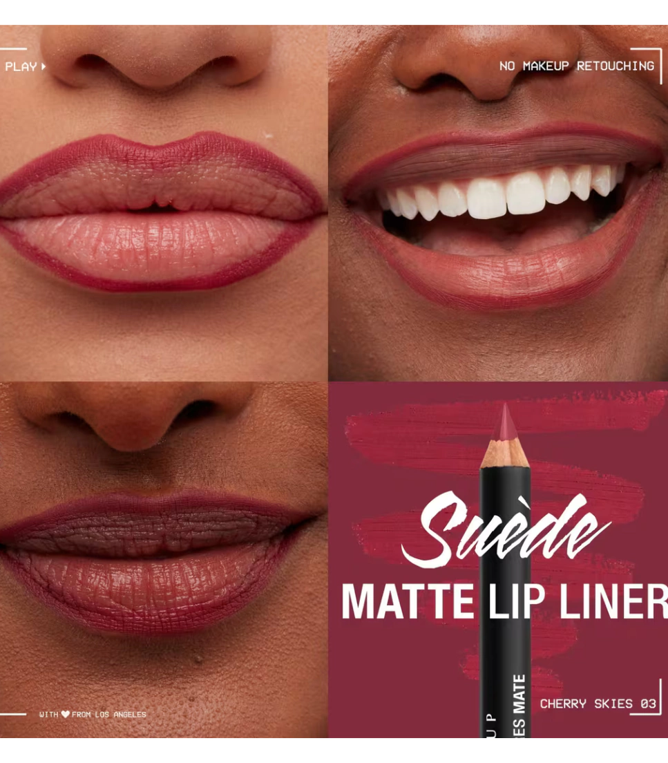 El delineado perfecto empieza aquí. Los Suede Matte Lip Liners están diseñados para combinar a la perfección con los Suede Matte Lipsticks y los Liquid Suede Cream Lipsticks, logrando un look de labios completo y sofisticado.