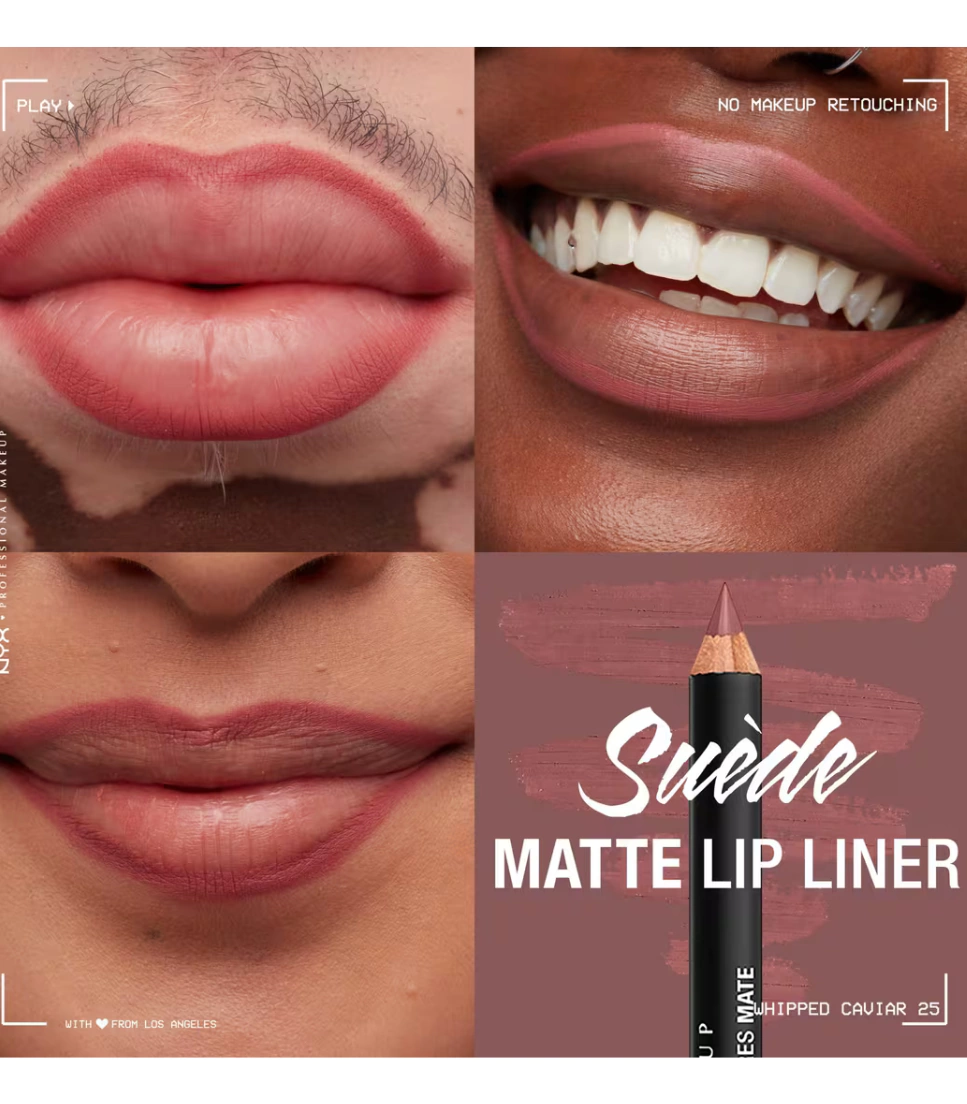 El delineado perfecto empieza aquí. Los Suede Matte Lip Liners están diseñados para combinar a la perfección con los Suede Matte Lipsticks y los Liquid Suede Cream Lipsticks, logrando un look de labios completo y sofisticado.