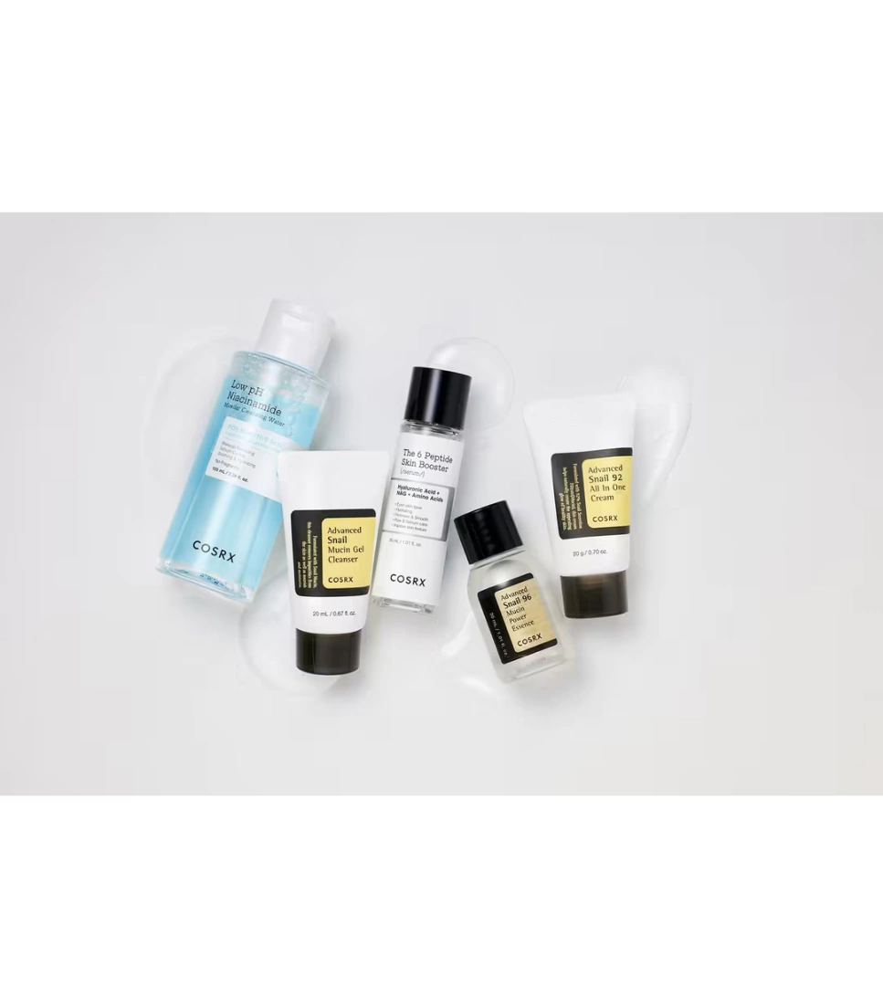 l kit viral que transforma tu rutina en un ritual coreano de alto rendimiento. PrepPair Kit reúne 5 productos esenciales de COSRX para limpiar, tratar e hidratar la piel, dejando una textura suave, un tono uniforme y un brillo saludable, tanto de día como de noche.