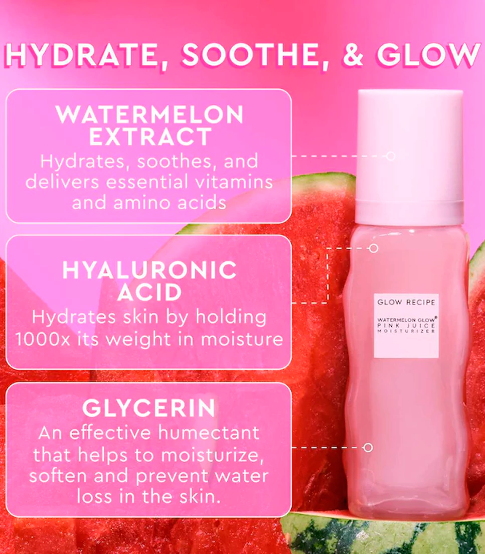 Lo que contiene: La sandía, la raíz de regaliz y los extractos botánicos calman y potencian visiblemente la luminosidad, mientras que el ácido hialurónico y la glicerina retienen la humedad para una hidratación duradera.
